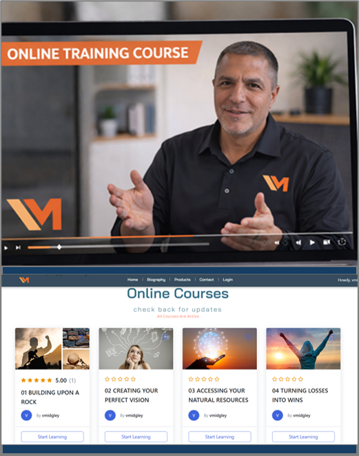 Access to the online courses, Victory! Audio Book, 3 Victory Midgley Authored Digital Books, Exclusive Inspiring Midgley Music, Study Tools, Weekly Tips, Discounts on live and virtual training sessions.